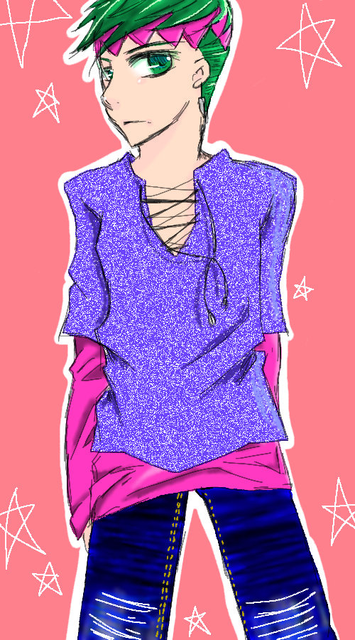 そして一向に原稿が進まない(笑)落書きばかり描いてます。まずは緑々した花京院。色は緑に統一しようと思い、塗ったら気持ち悪い人になった・・・。